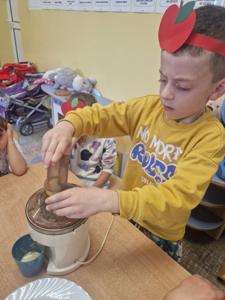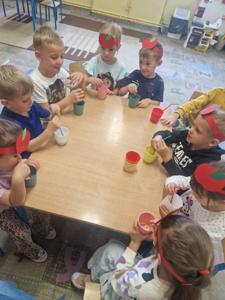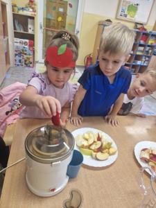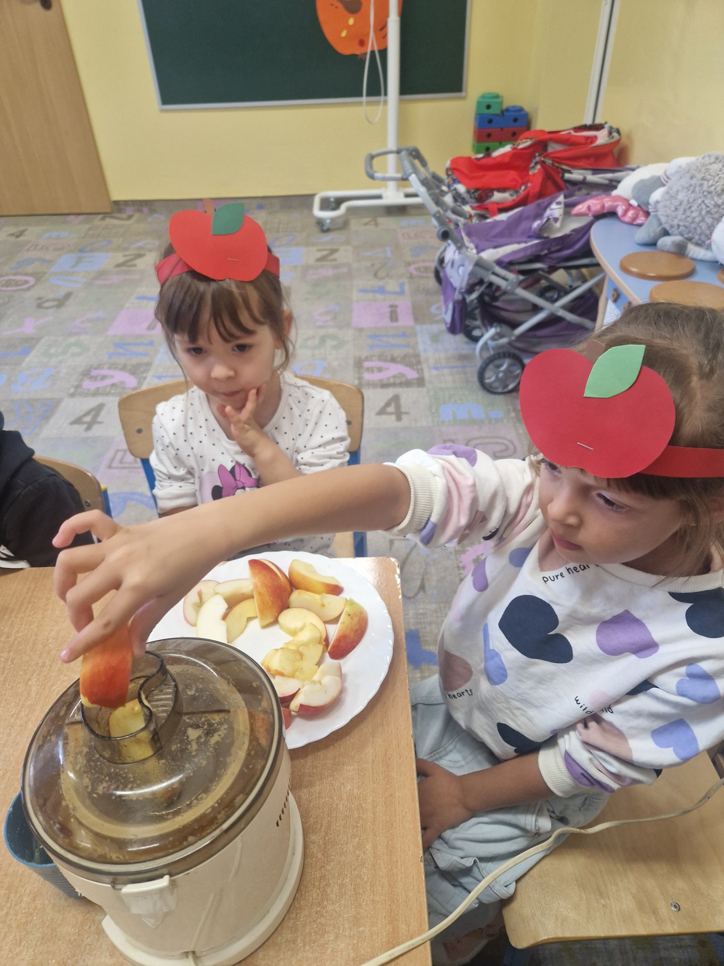 29 września przedszkolaki obchodziły Dzień jabłka. W Polsce jabłko jest symbolem polskiego rolnictwa, dlatego w tym dniu promujemy korzyści zdrowotne wynikające ze spożywania jabłek. W naszym przedszkolu wiedzę i umiejętności zdobywamy poprzez praktyczne działanie, dlatego dzieci zrobiły sok z jabłek zachowując zasady bezpieczeństwa i higieny. Poznały również budowę jabłka i wysłuchały wiersza "Entliczek Pentliczek" Jana Brzechwy.