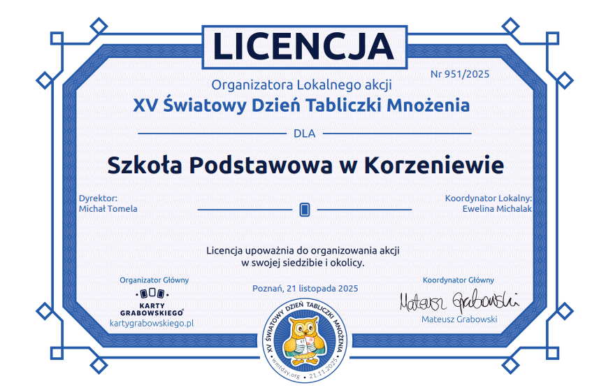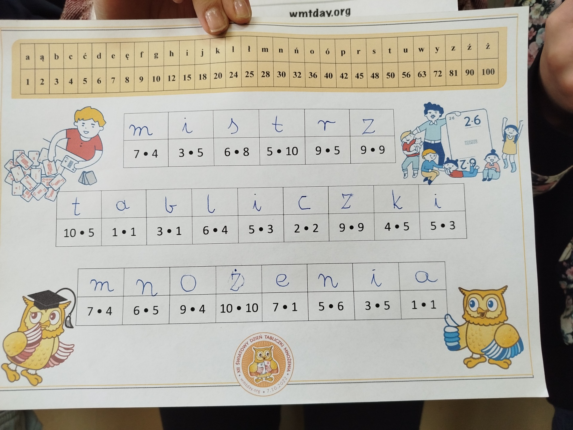 w wydarzenia edukacyjne. Widać było, jak wielu z nich traktuje tę akcję nie tylko jako zabawę, lecz także jako okazję do sprawdzenia swoich umiejętności i pokazania, że matematyka może być piękną przygodą. Tegoroczne obchody po raz kolejny udowodniły, że nauka jest najprzyjemniejsza wtedy, gdy towarzyszy jej radość, ciekawość i wsparcie. Już nie możemy doczekać się kolejnej edycji, która z pewnością przyniesie nowe wyzwania i matematyczne przygody!Gratuluję wszystkim „EKSPERTOM TABLICZKI MNOŻENIA”!