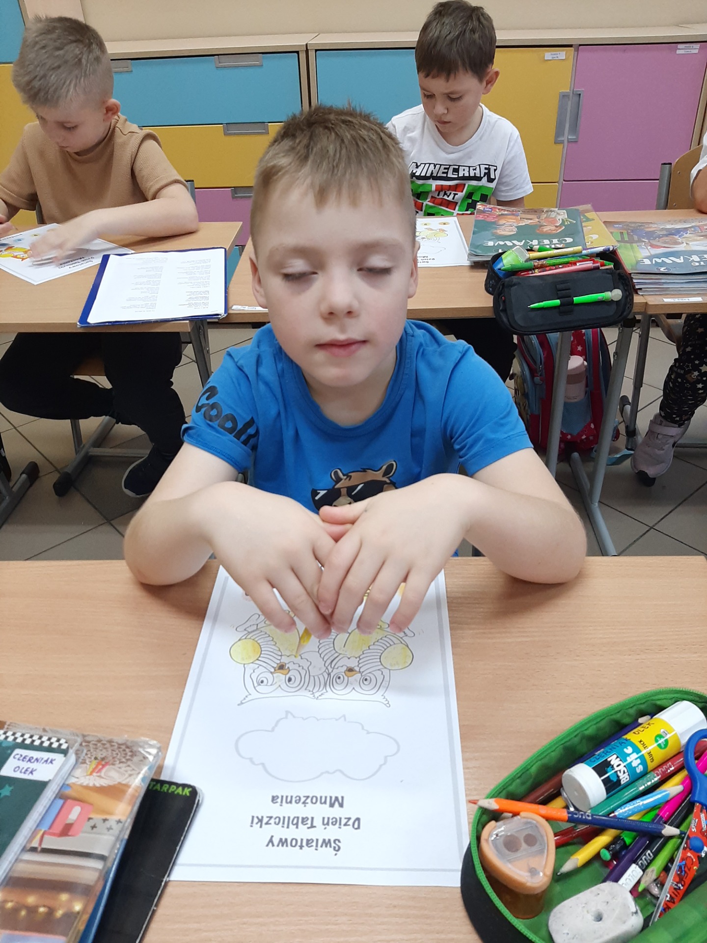 W bieżącym roku obchodziliśmy XV edycję tego wydarzenia, a jego świętowanie przypadło 21 listopada. Do akcji tym razem zgłosiło się łącznie 6863 placówek, a wśród nich była również nasza szkoła. W dniu szkolnego święta matematyki bardzo ważną rolę odegrali uczniowie klasy 4, którzy wcielili się w role egzaminatorów i asystentów. Z zaangażowaniem sprawdzali znajomość tabliczki mnożenia wśród uczniów, Pana Dyrektora, nauczycieli oraz pracowników szkoły. Każda osoba, która poprawnie rozwiązała mini test, otrzymała odznakę oraz imienny certyfikat „EKSPERTA TABLICZKI MNOŻENIA”. W tym roku do akcji dołączyli również najmłodsi uczniowie, którzy jeszcze nie znają tabliczki mnożenia, ale z ogromnym zapałem rozwiązywali przygotowane dla nich matematyczne łamigłówki. Dzięki różnorodnym zadaniom mogli rozwijać spostrzegawczość