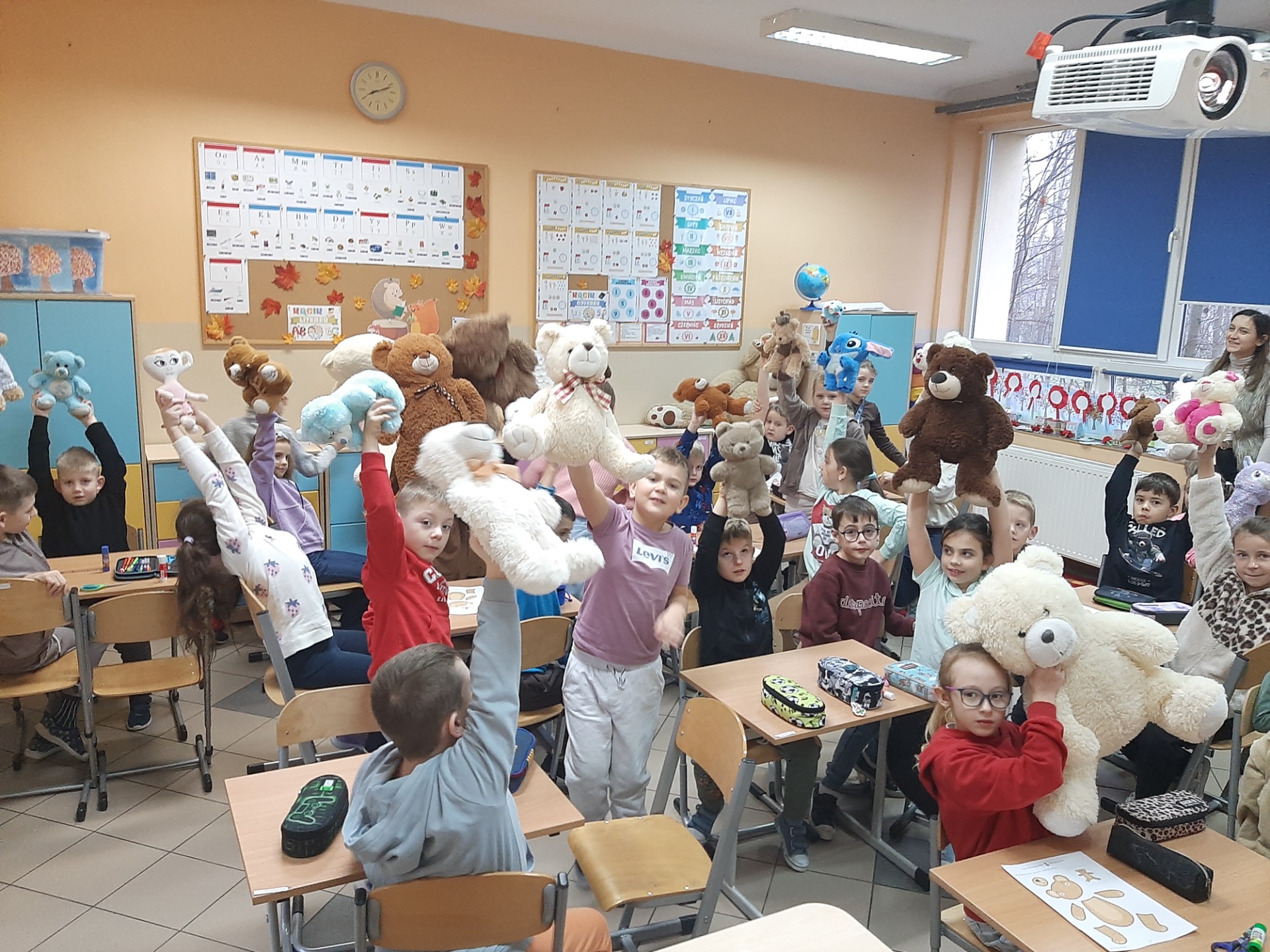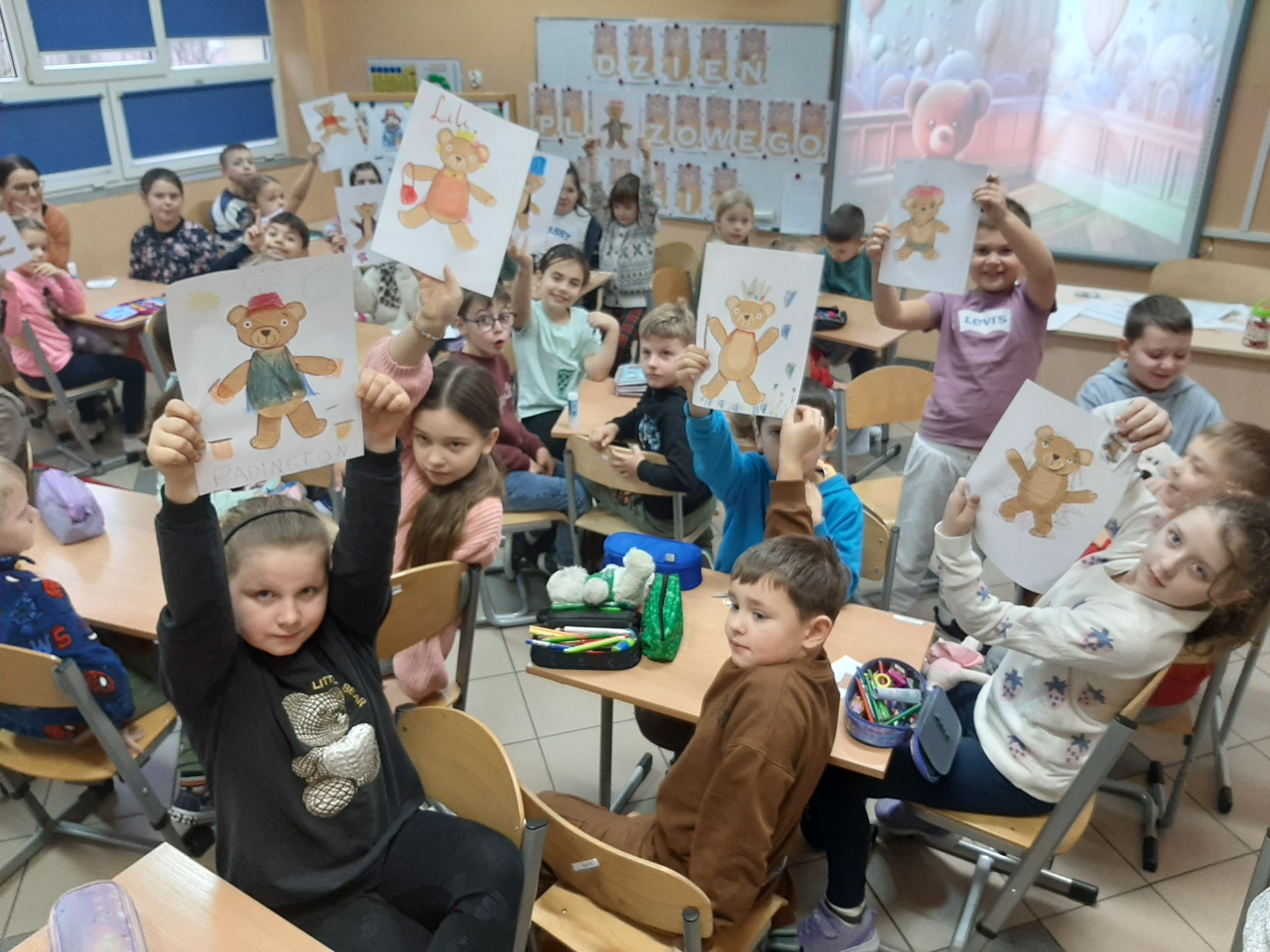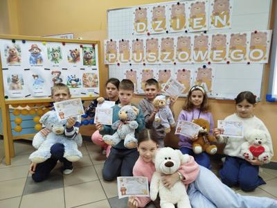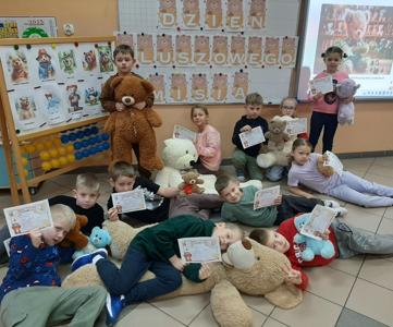Tegoroczne obchody Dnia Pluszowego Misia okazały się pełne radości, kreatywności i serdecznej atmosfery. Uczniowie aktywnie angażowali się w różnorodne zadania i mieli okazję rozwijać zarówno wyobraźnię, jak i umiejętności współpracy. Tańce, zabawy ruchowe, prace plastyczne oraz obecność wyjątkowych pluszowych towarzyszy sprawiły, że dzień był wyjątkowy i pełen pozytywnych emocji.