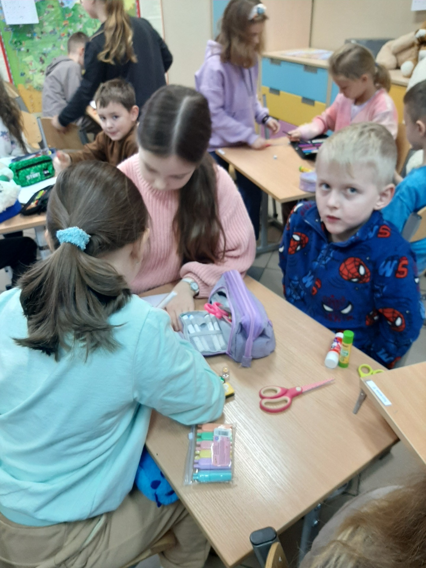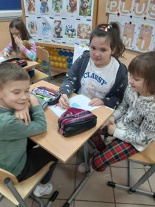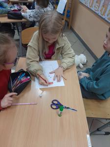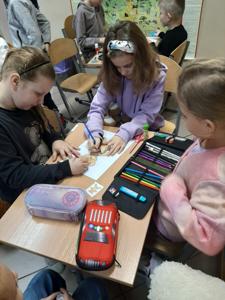 Atmosfera pełna uśmiechu, serdeczności i spontanicznej radości towarzyszyła dzieciom przez cały dzień. Wystawa prac zdobiąca szkolny korytarz stała się kolorową pamiątką tych wyjątkowych chwil, a imienne certyfikaty przypomniały uczniom, jak ważna jest przyjaźń i wspólne przeżywanie pozytywnych doświadczeń. To był dzień, który nie tylko dostarczył mnóstwa zabawy, lecz także zbliżył uczniów do siebie, wzmacniając relacje i budując wyjątkową atmosferę wśród najmłodszych.