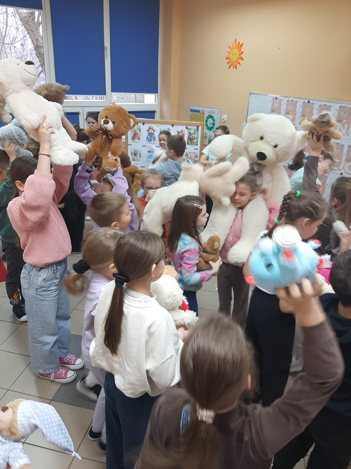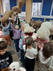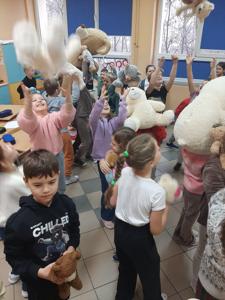 Kolejną atrakcją były zabawy ruchowe przy muzyce, które dostarczyły mnóstwa radości i energii. Wspólnej zabawie towarzyszyły oczywiście misiowe przytulanki, które sprawiły, że atmosfera stała się jeszcze cieplejsza i bardziej wyjątkowa.