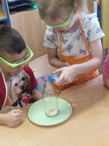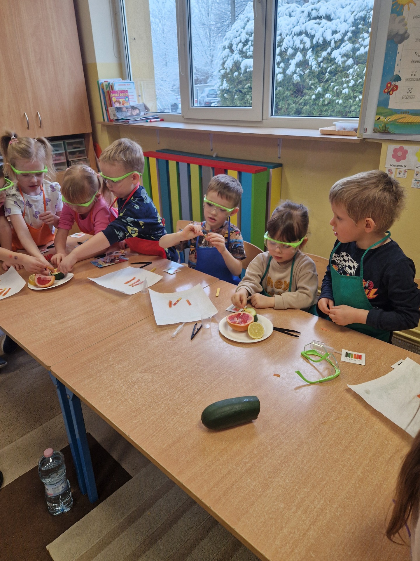 Odpowiedzi na to pytanie szukały ostatnio przedszkolaki. Razem z panią Pauliną- mamą Elizy odkrywały tajniki chemii. Samodzielnie wykonały pianę tlenową oraz sprawdzały pH warzyw i owoców. Już wiemy, że cytryna ma zdecydowanie odczyn kwaśny, a żeby obudzić drożdże trzeba je zalać ciepłą wodą i mocno potrząsać. Dziękujemy za ogromną dawkę wiedzy i akcesoria małego chemika.