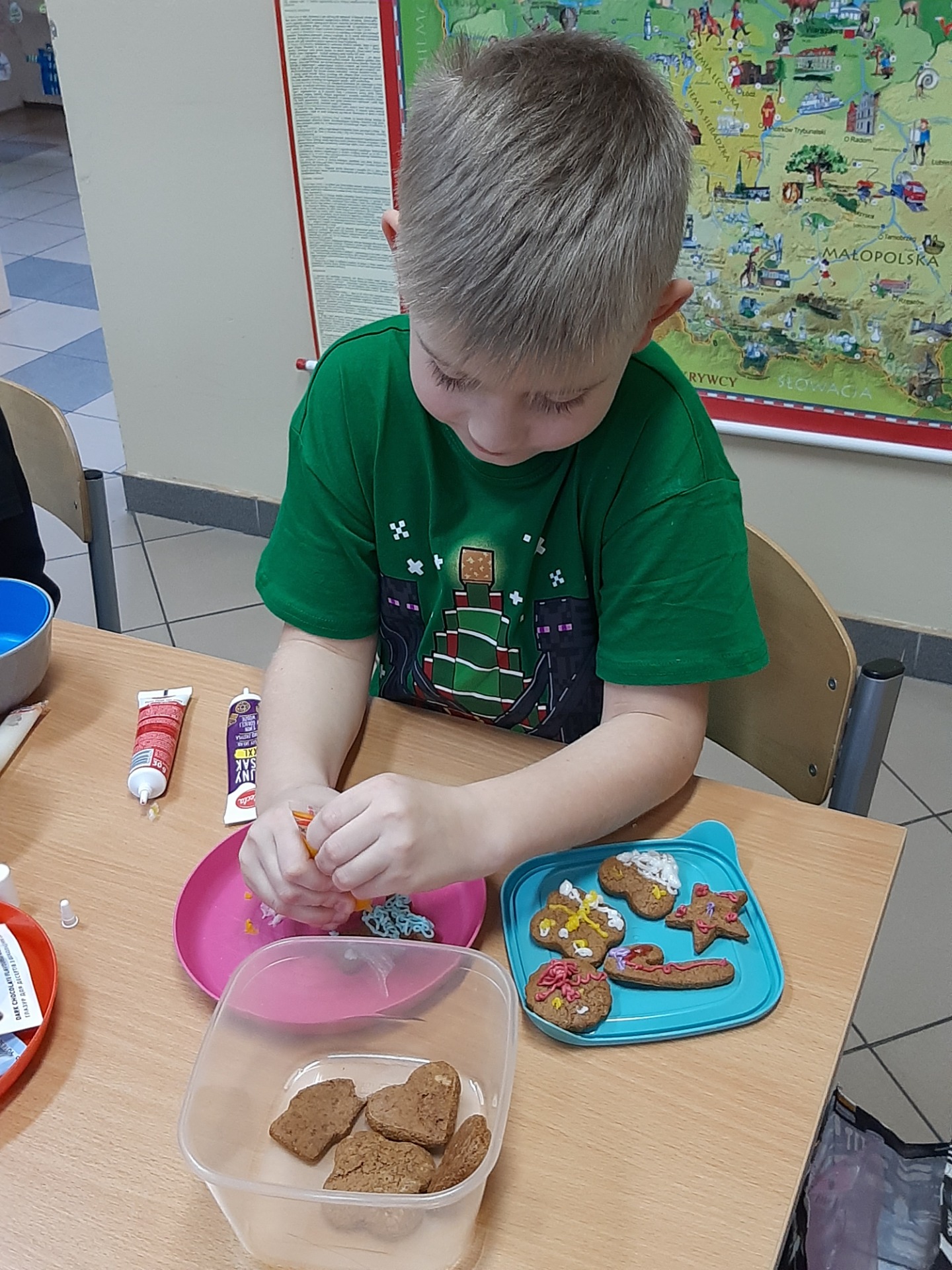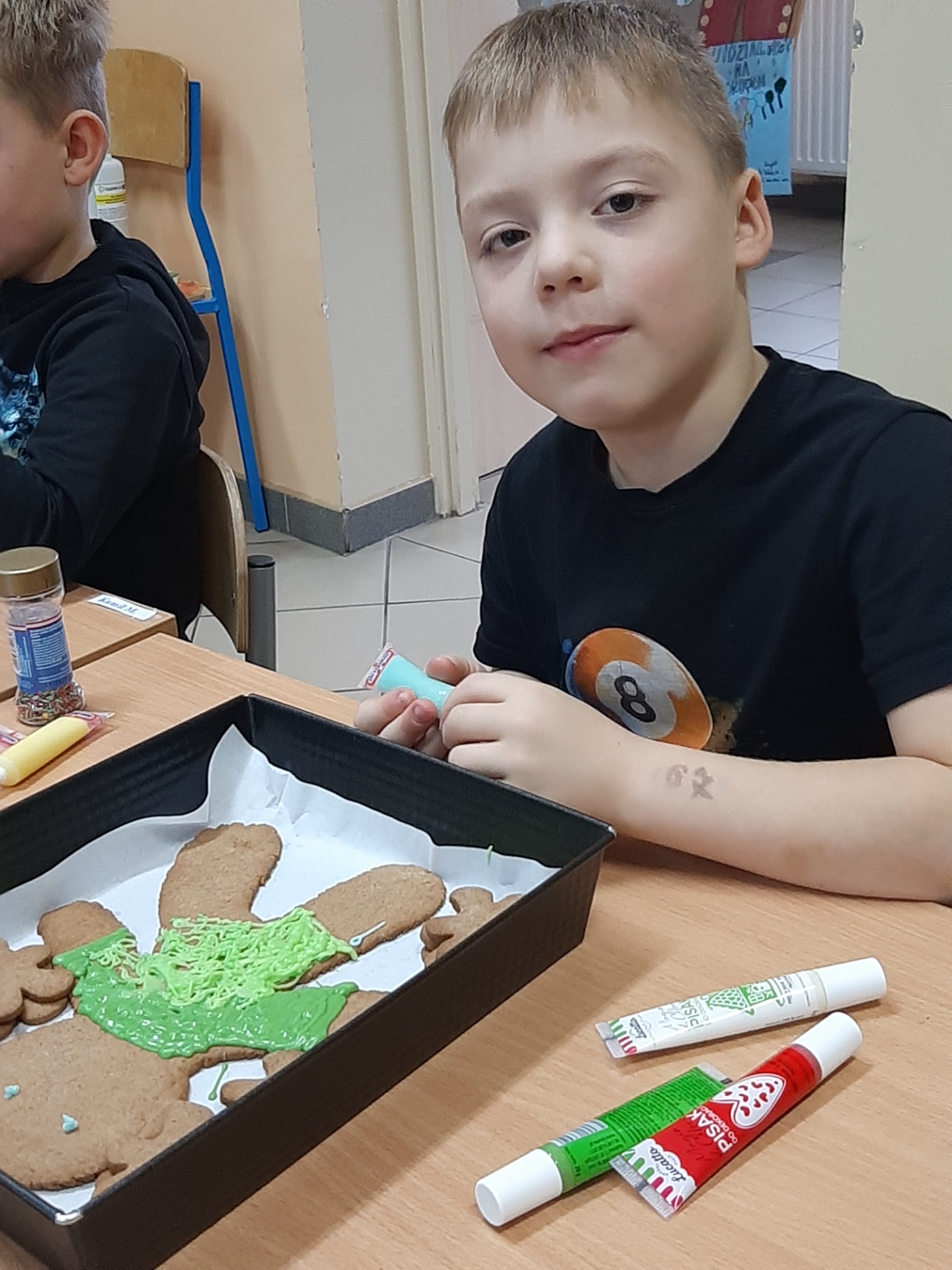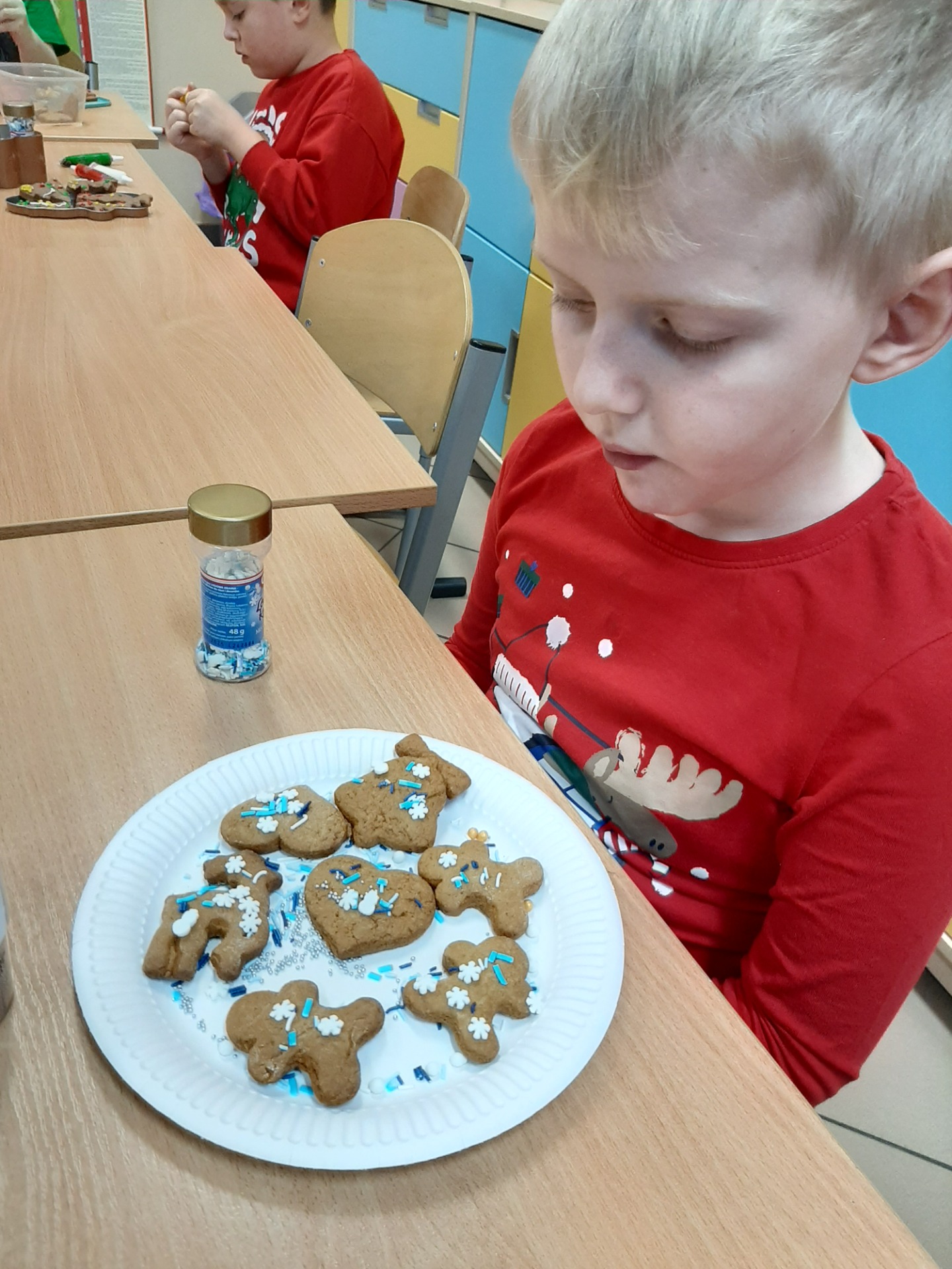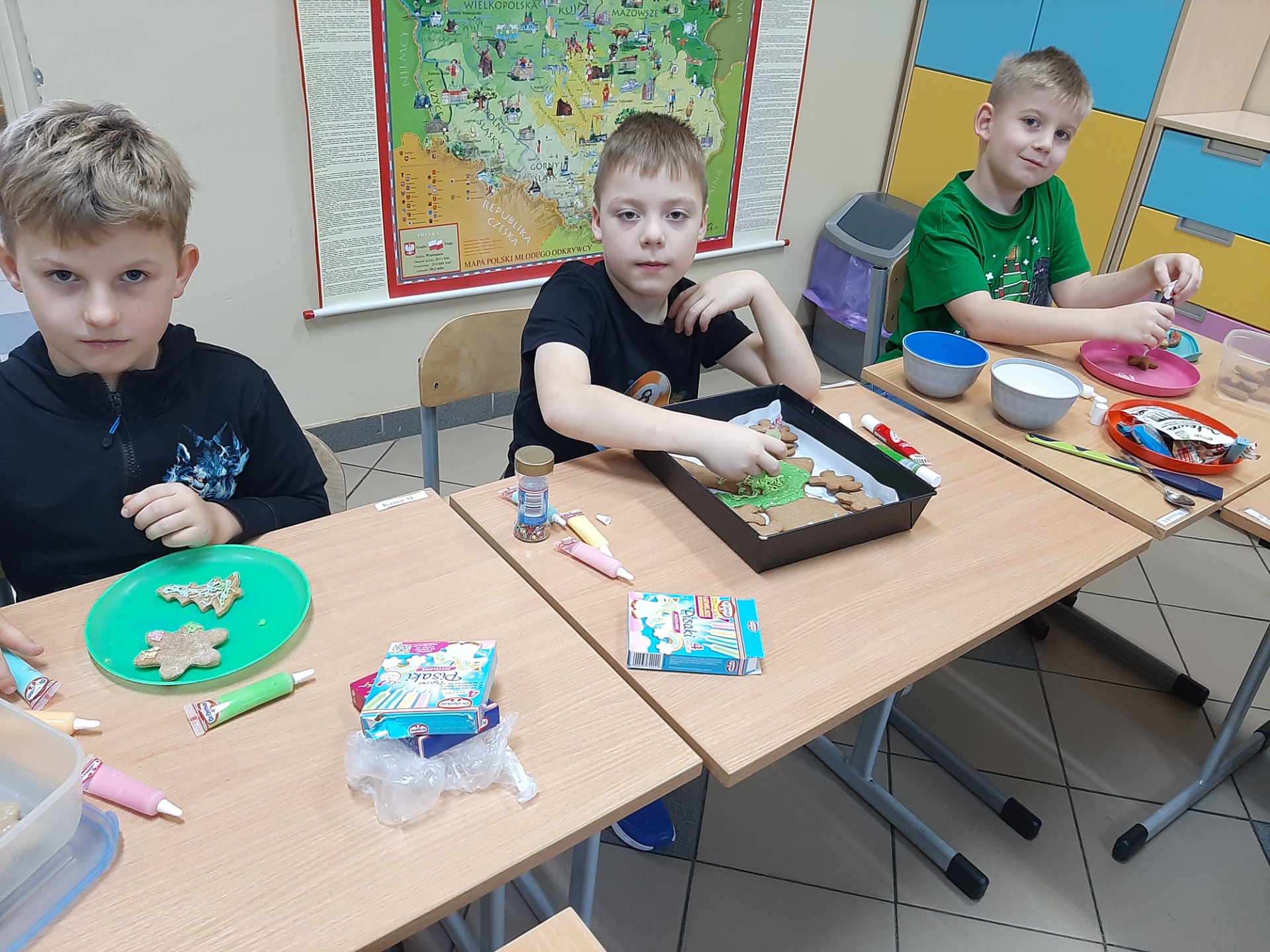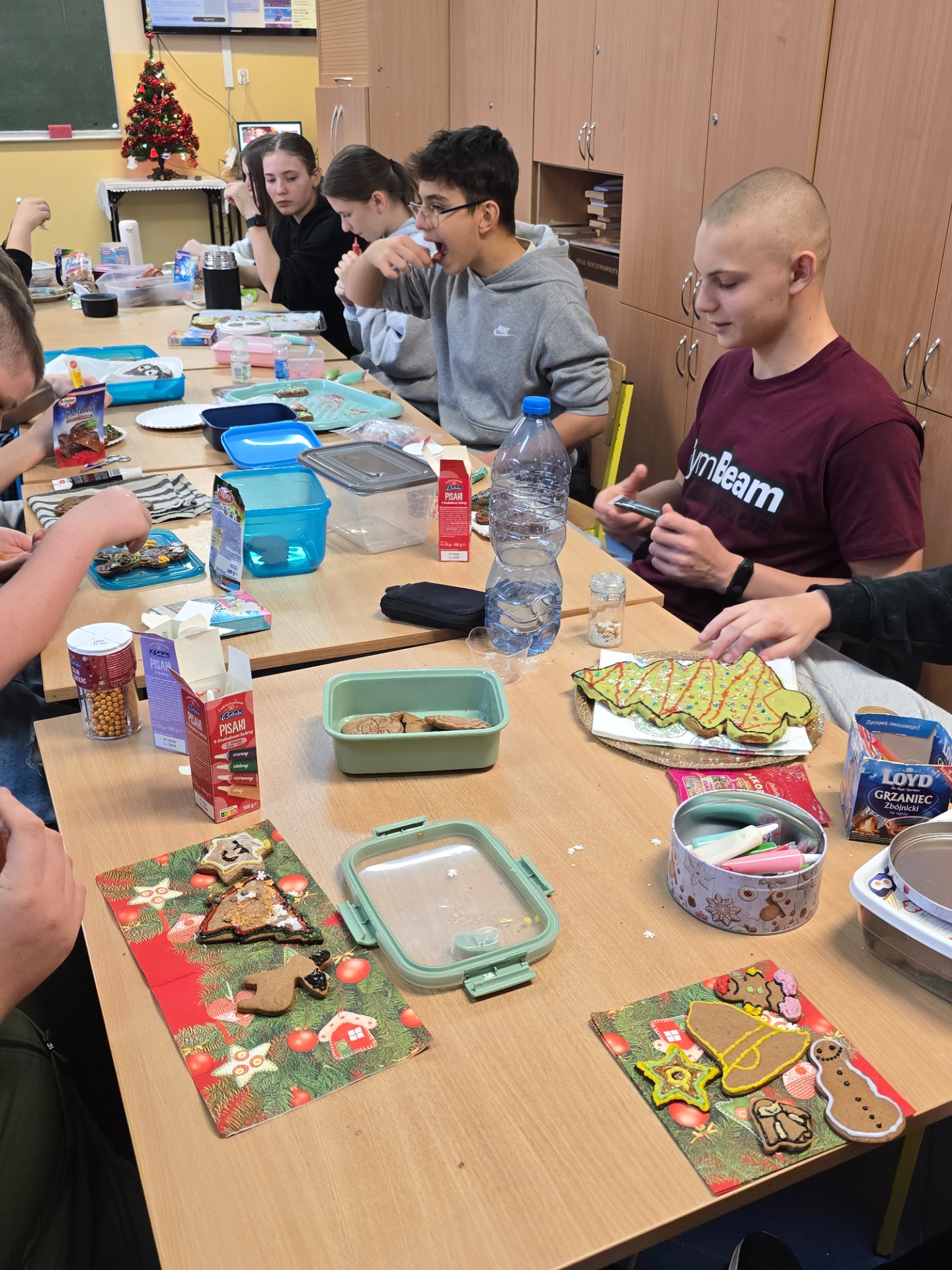 Kiedy za oknem szaro, buro i ponuro, dobrze czymś ocieplić tę smutną pogodę i zimową atmosferę. Może słodkimi, aromatycznymi przysmakami? Oczywiście! Naszą szkolną tradycją jest coroczne organizowanie Klasowych Piernikarni. Najpierw jednak uczniowie, korzystając ze sprawdzonych przepisów, pieką w domu wspólnie z mamami, babciami przepyszne, korzenno - miodowe ciasteczka. Następnie w sporych ilościach te cuda trafiają do klas i uczniowie w towarzystwie kolegów i koleżanek ciacha lukrują, posypują, stroją. Ileż przy tym radości, ileż zabawy, ileż słodkiej degustacji.