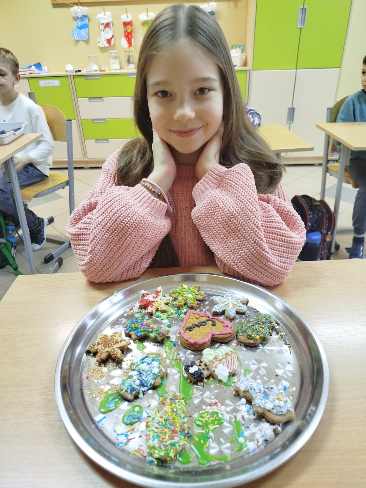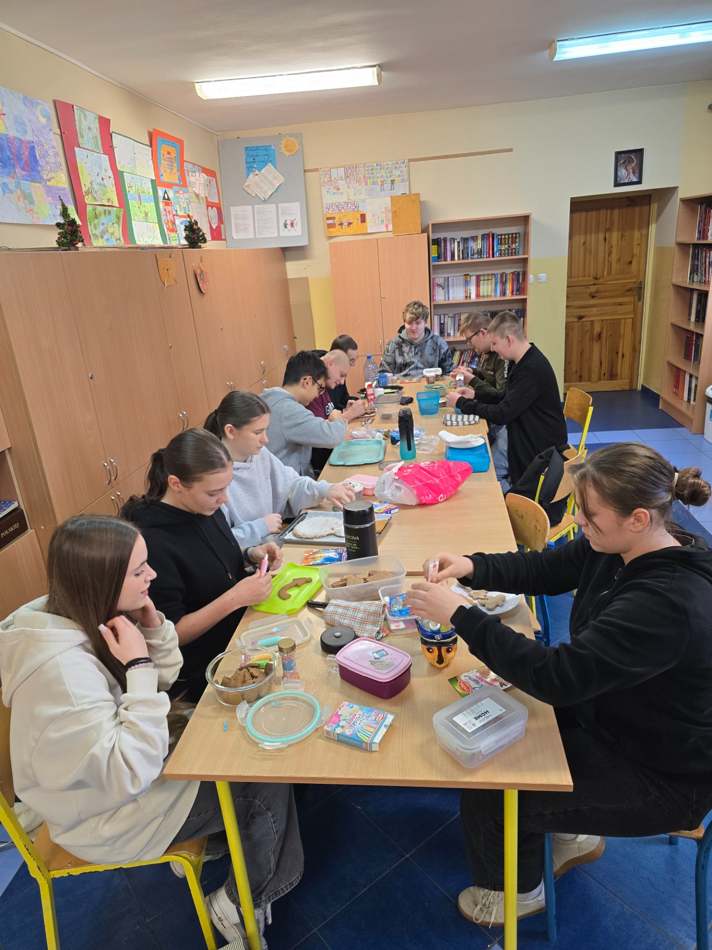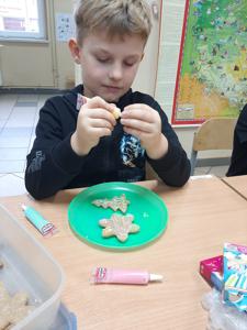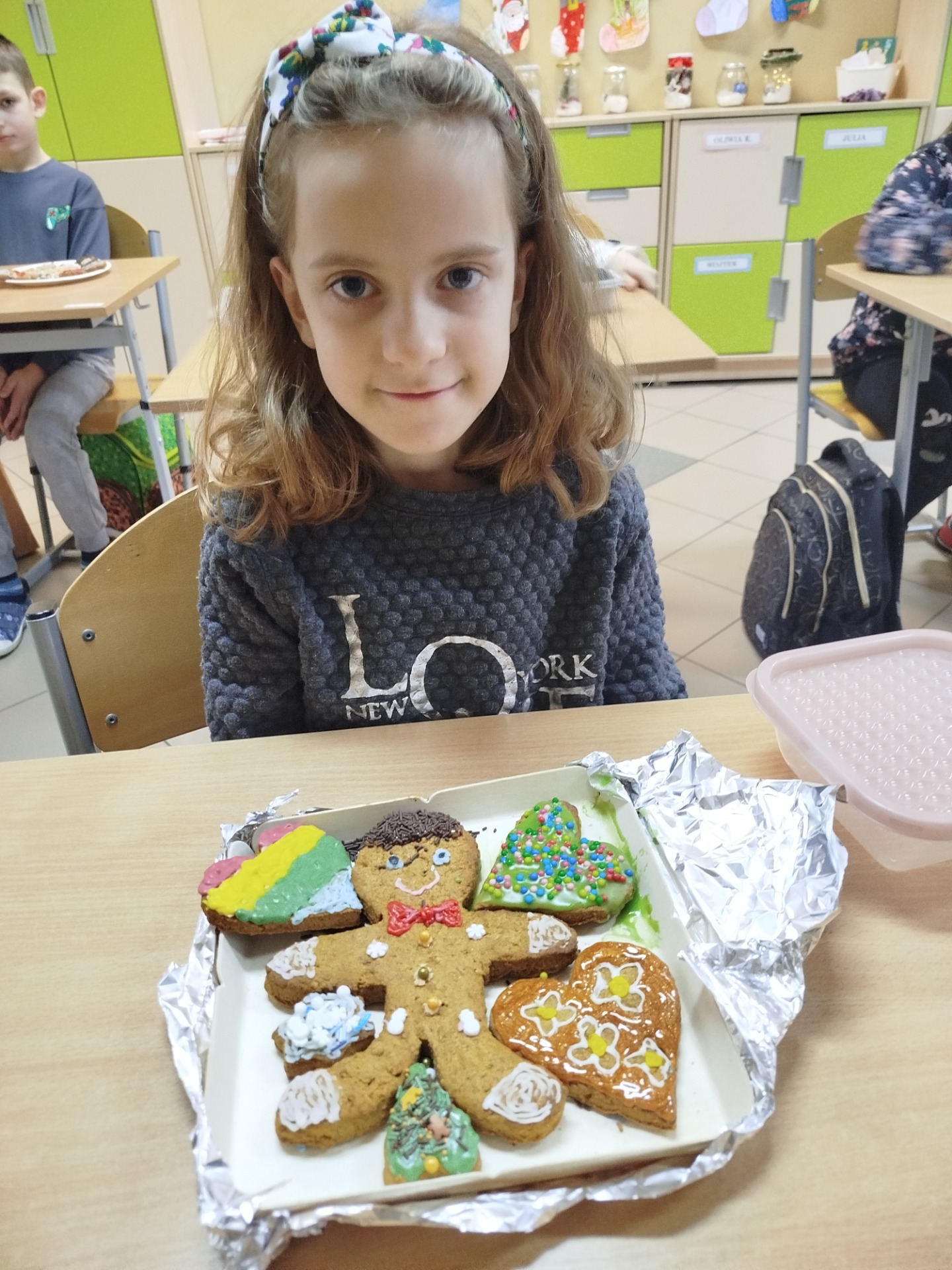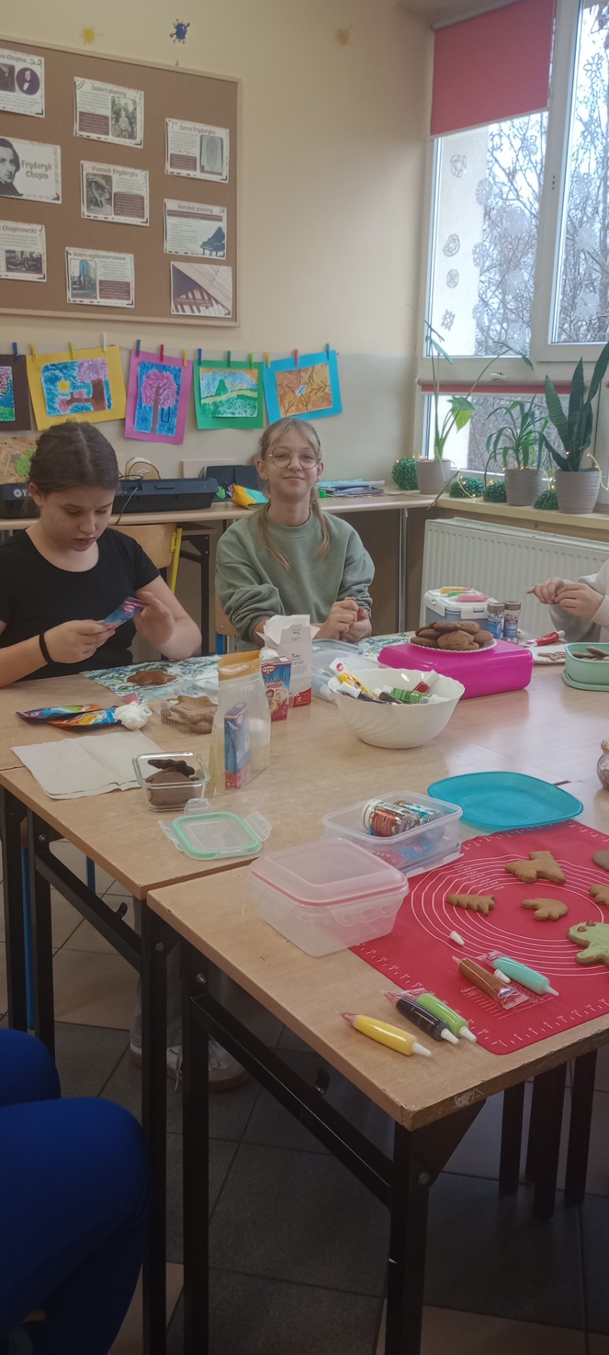 Kiedy za oknem szaro, buro i ponuro, dobrze czymś ocieplić tę smutną pogodę i zimową atmosferę. Może słodkimi, aromatycznymi przysmakami? Oczywiście! Naszą szkolną tradycją jest coroczne organizowanie Klasowych Piernikarni. Najpierw jednak uczniowie, korzystając ze sprawdzonych przepisów, pieką w domu wspólnie z mamami, babciami przepyszne, korzenno - miodowe ciasteczka. Następnie w sporych ilościach te cuda trafiają do klas i uczniowie w towarzystwie kolegów i koleżanek ciacha lukrują, posypują, stroją. Ileż przy tym radości, ileż zabawy, ileż słodkiej degustacji.