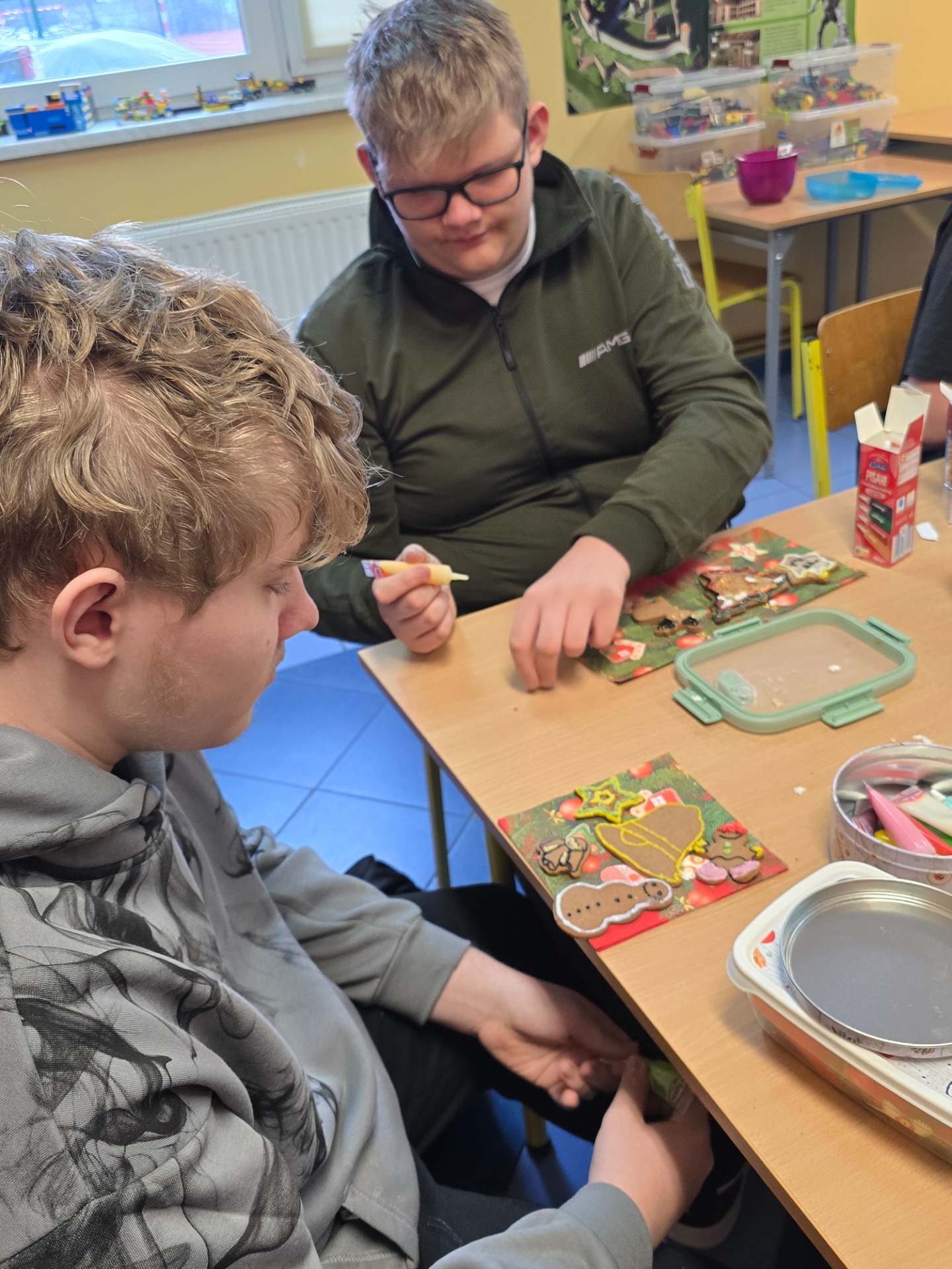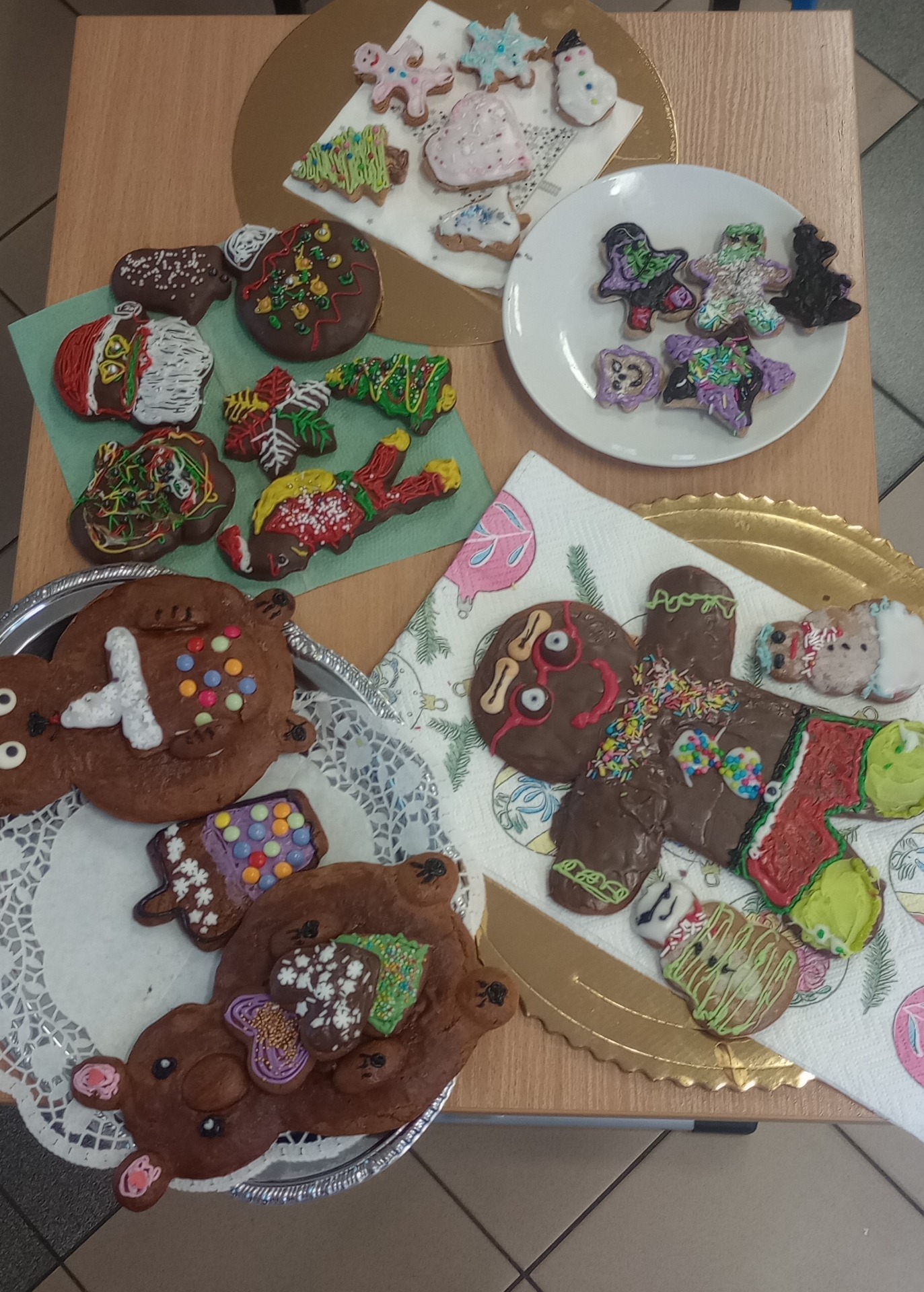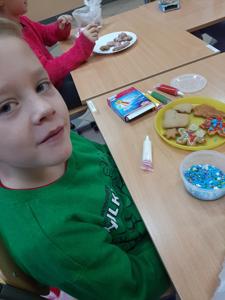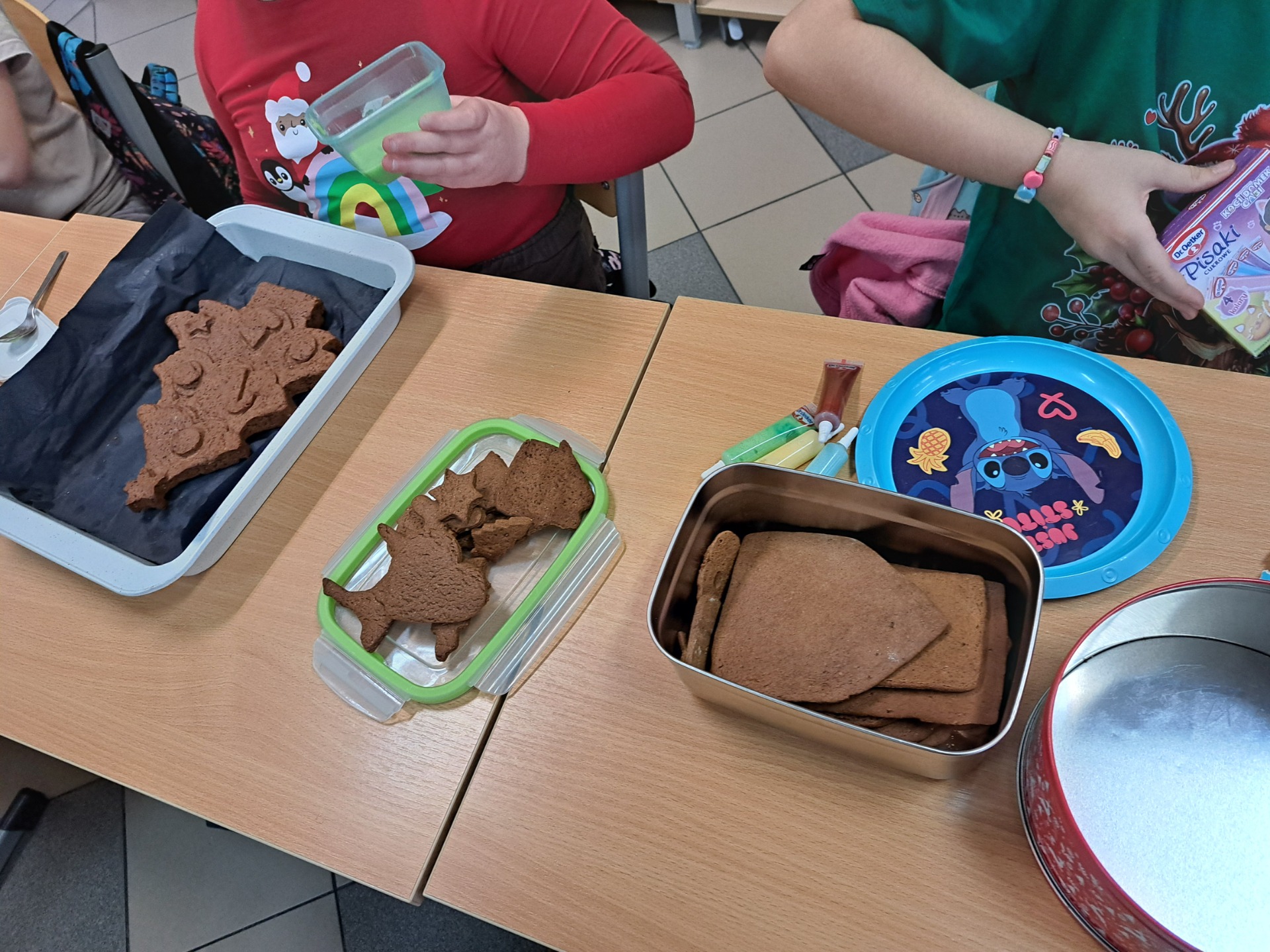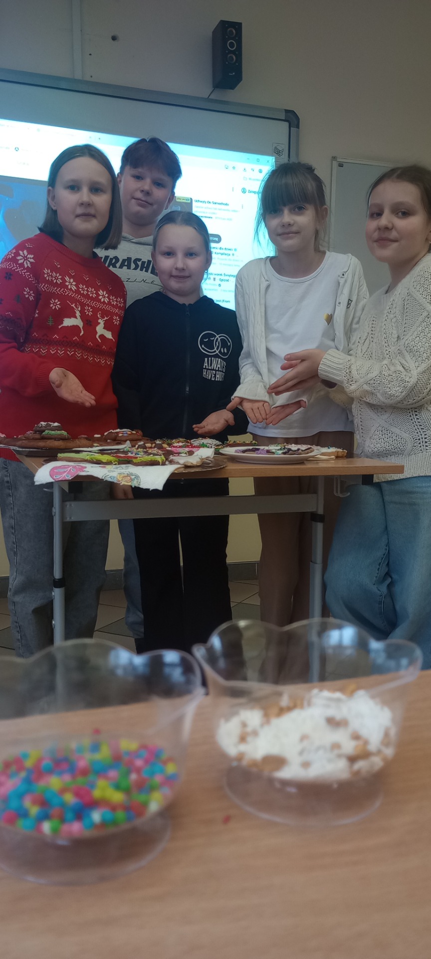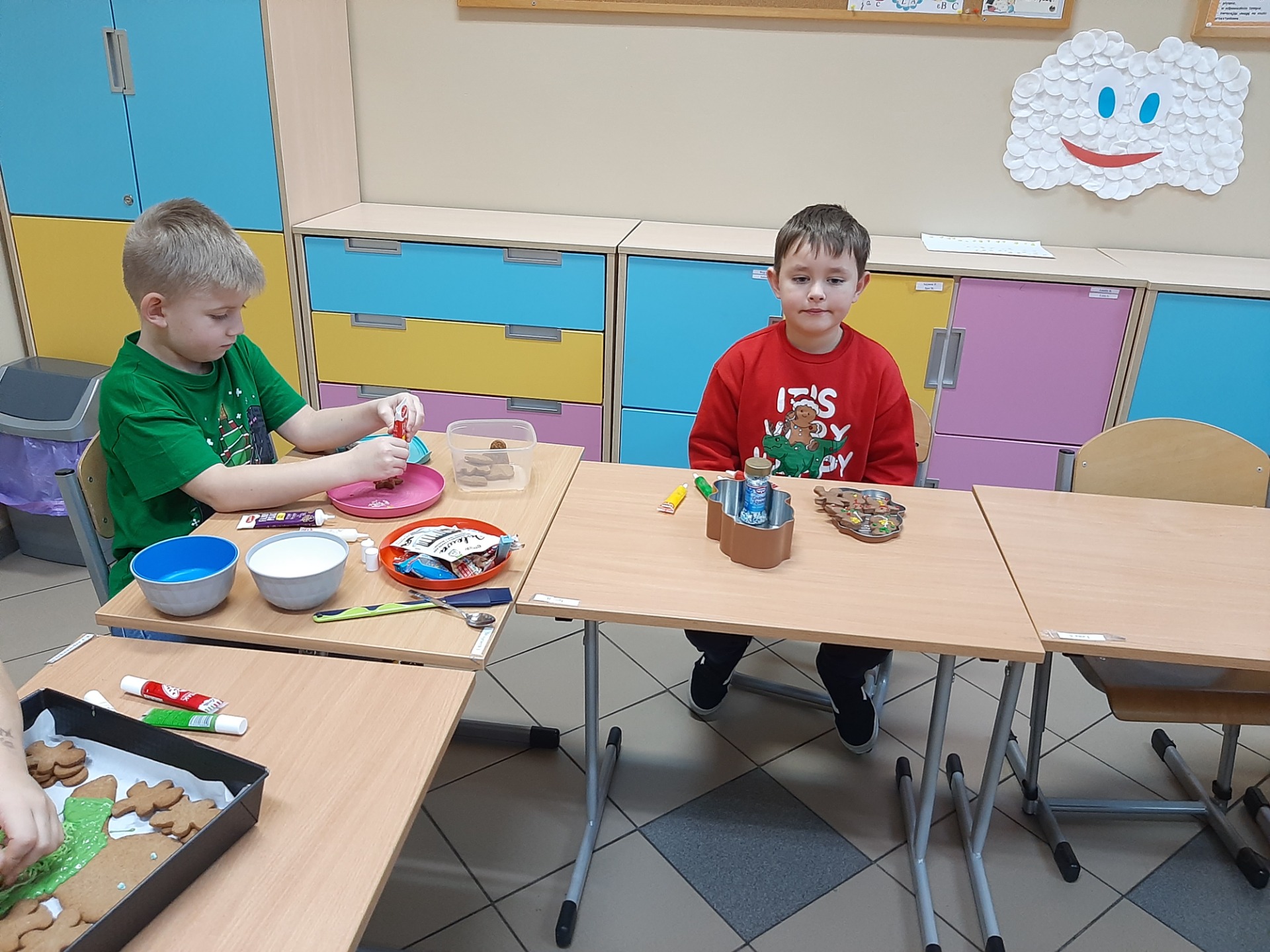 Kiedy za oknem szaro, buro i ponuro, dobrze czymś ocieplić tę smutną pogodę i zimową atmosferę. Może słodkimi, aromatycznymi przysmakami? Oczywiście! Naszą szkolną tradycją jest coroczne organizowanie Klasowych Piernikarni. Najpierw jednak uczniowie, korzystając ze sprawdzonych przepisów, pieką w domu wspólnie z mamami, babciami przepyszne, korzenno - miodowe ciasteczka. Następnie w sporych ilościach te cuda trafiają do klas i uczniowie w towarzystwie kolegów i koleżanek ciacha lukrują, posypują, stroją. Ileż przy tym radości, ileż zabawy, ileż słodkiej degustacji.