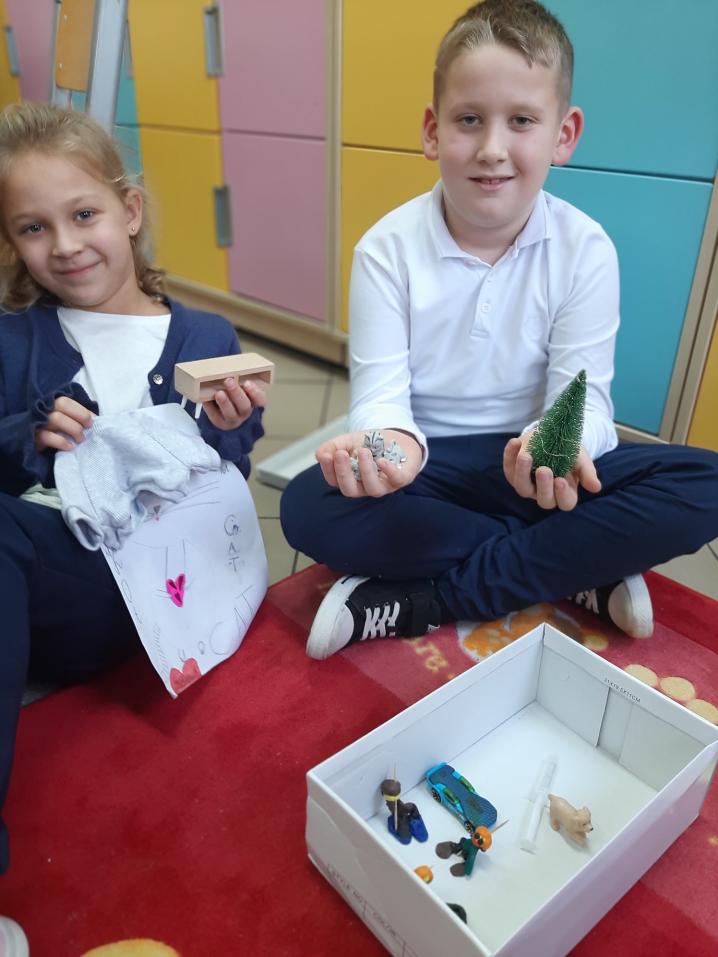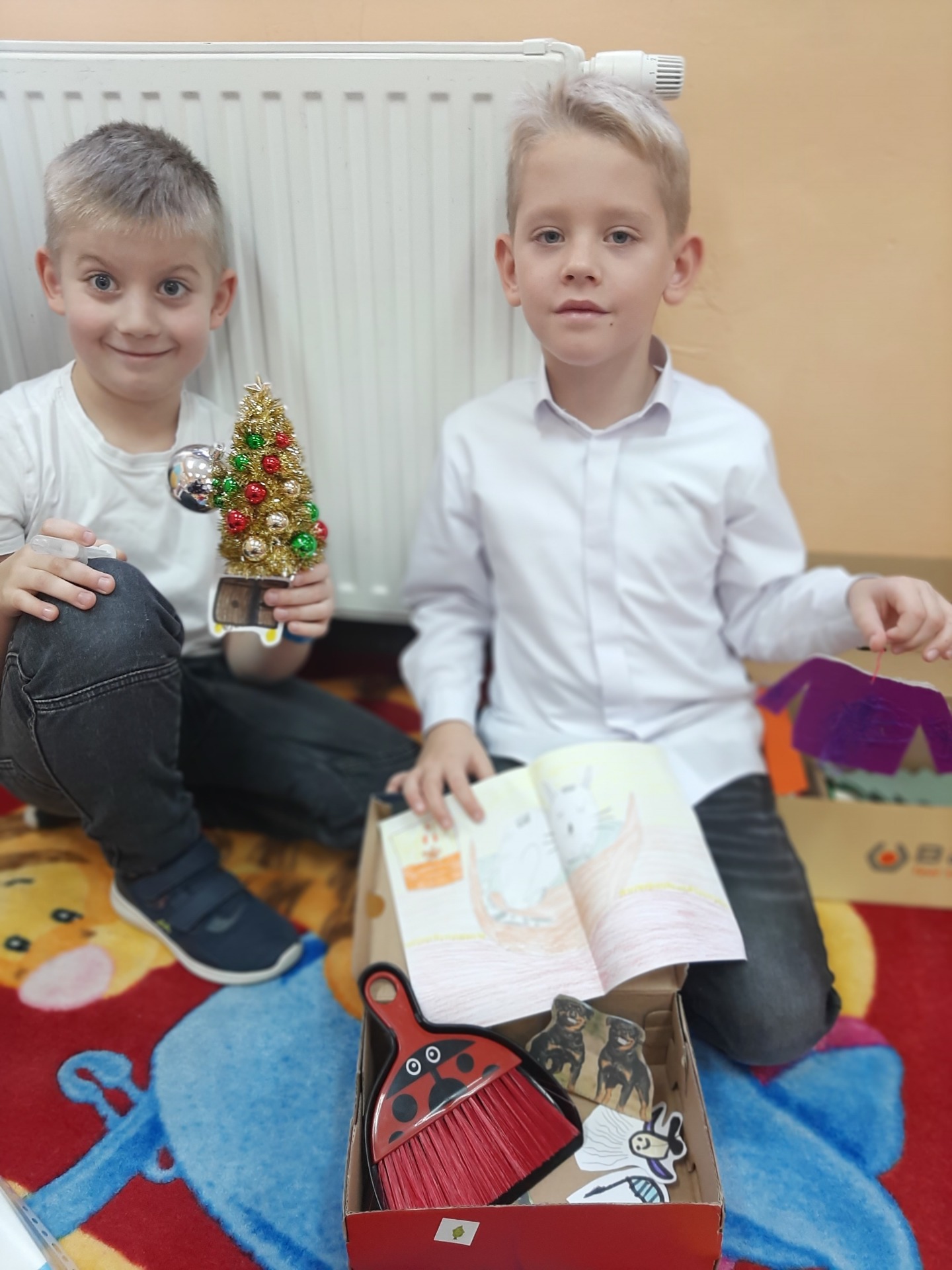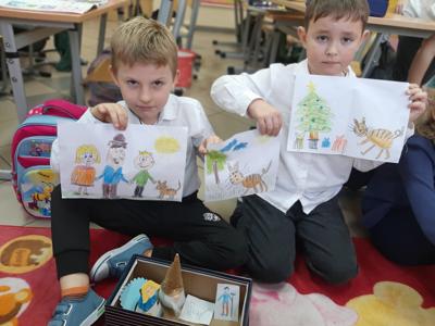 Pracując nad projektem dzieci wykazały się ogromną kreatywnością i pomysłowością. Uczniowie w parach przygotowali pudełka, w których umieścili najważniejsze elementy związane z lekturą. W znalazły się w nich m.in. ilustracje przedstawiające bohaterów, ulubione sceny z książki, własnoręcznie wykonane rekwizyty oraz przedmioty związane z lekturą (figurki zwierząt, sweterki, choinki, miniaturowa komoda, książka itp.). Dzięki temu każde pudełko stało się wyjątkową i osobistą interpretacją lektury.