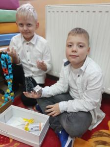 Podczas realizacji tego zadania w klasie panowała wyjątkowo twórcza atmosfera. Dzieci wymieniały się pomysłami, pomagały sobie nawzajem i z ogromnym zaangażowaniem przygotowywały elementy swoich pudełek. Każde z nich było unikalne, przemyślane, pełne osobistych skojarzeń i stało się bardzo ciekawą formą utrwalenia treści lektury.