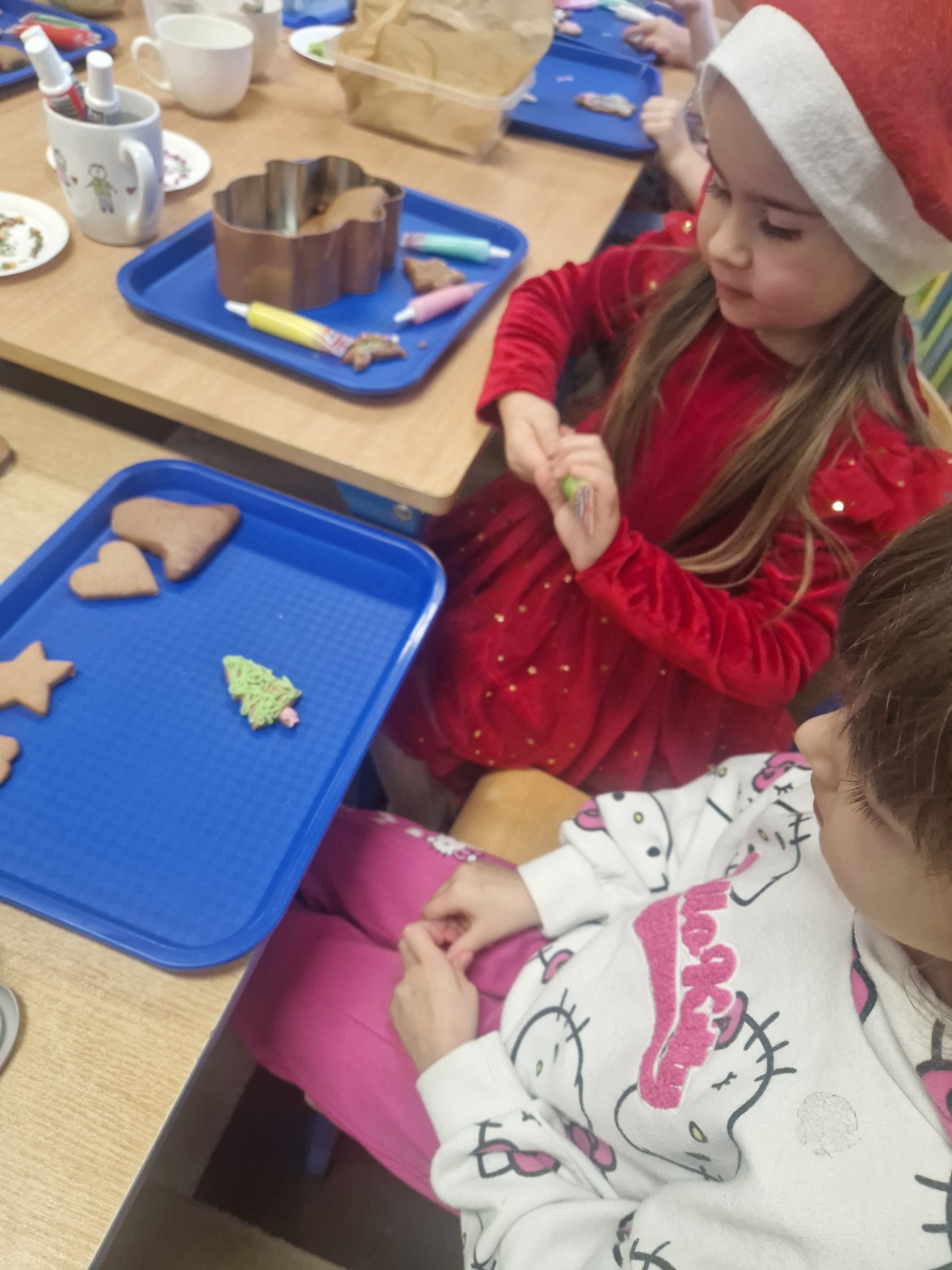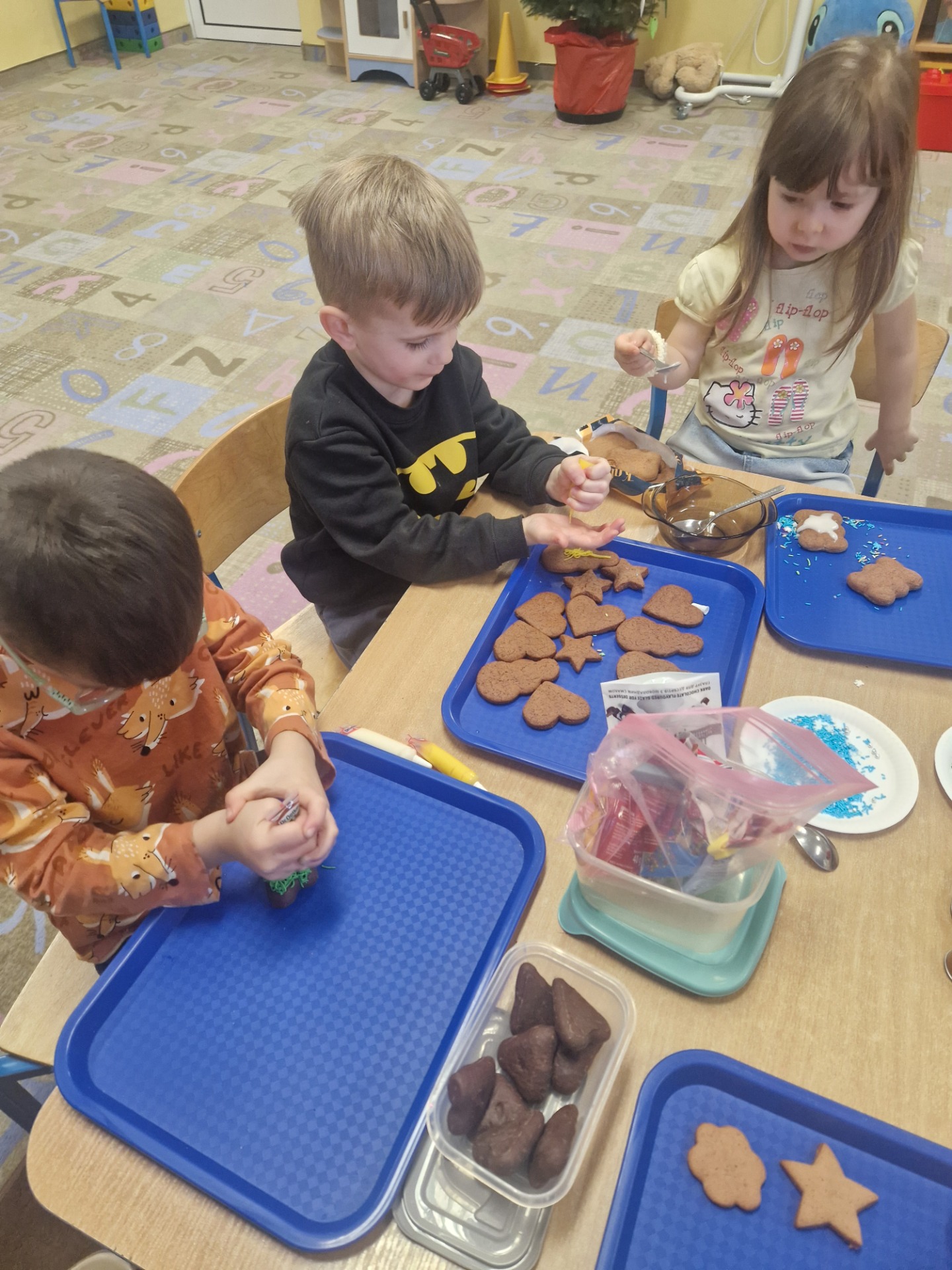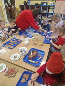 Nasze przedszkolaki też aktywnie włączyły się w dekorowanie pierników. Najpierw jednak wysłuchały bajki o Świętach Bożego Narodzenia, którą przeczytała nam pani Monika- mama Franka. Później ochoczo zabrały się do pracy i powstały prawdziwe dzieła sztuki. Aż żal je zjadać... Dziękujemy pani Monice za pomoc i wspólnie spędzony czas.